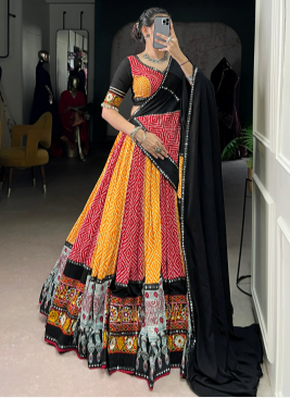 The Lehenga for Garba is just as popular and preferred as the Garba. The Lehenga for Garba is a must-have for many women during Navratri. It is a gorgeous and comfortable choice for this active and lively dance style. Garba lehengas are made to let you move freely without sacrificing flair, unlike conventional lehengas, which can be a little heavy.